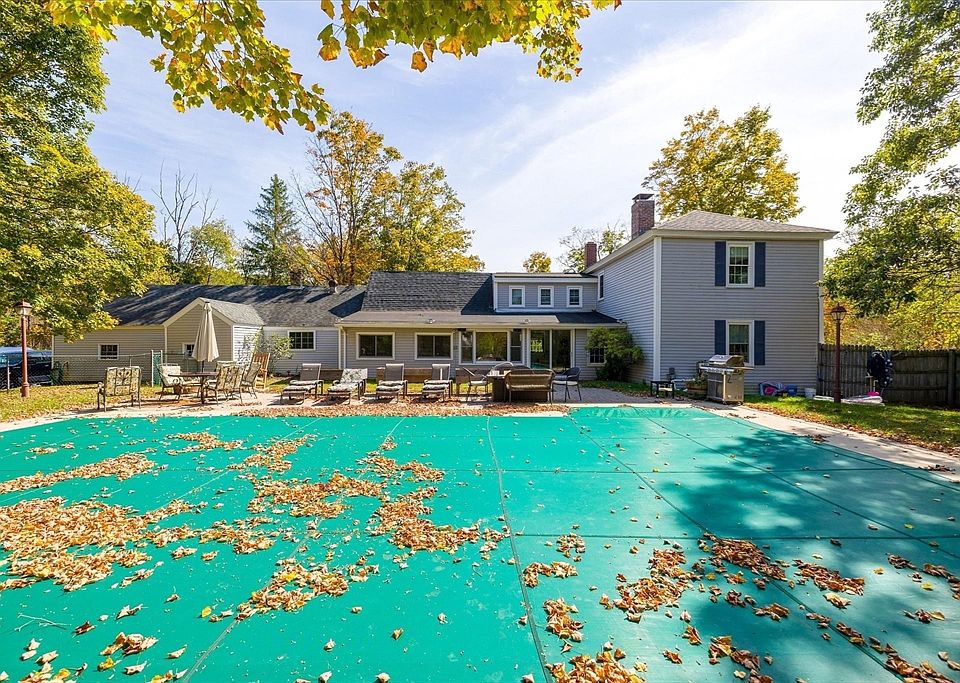 Welcome home to this charming Antique Colonial, perfectly situated on 2 acres & offering over 2,300 sq. ft. of space with an INCREDIBLE in-ground pool oasis. Brimming with updates, this home features a newer roof, brand new windows & heating system and a fully renovated kitchen & bathrooms - ensuring modern comfort while maintaining timeless character. Inside, the 1st floor offers flexibility & space with TWO living rooms, a dedicated laundry room & a stunning kitchen with stone counters, updated cabinetry & appliances. The kitchen flows into the enclosed porch/pool room with its own hidden speakeasy for entertaining. A separate dining room doubles as a potential 1st floor bedroom, while the 2nd living room showcases custom built-ins, Harman pellet insert & cozy bench nook. Upstairs, discover 3 spacious bedrooms, an updated full bath & another fireplace. Outdoors is truly the retreat- an in-ground pool with patio overlooking acreage, a massive storage shed & a 2 car garage!!