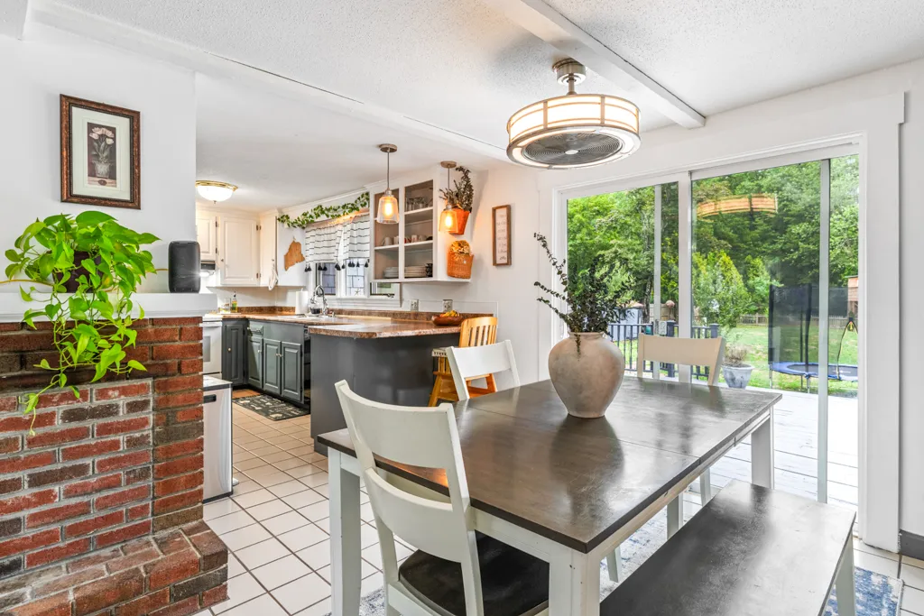 Formal dining areaAmple closet spaceGenerous cabinetryPerennial bedsHardwood flooringGently sloping landWell-sized flex space
