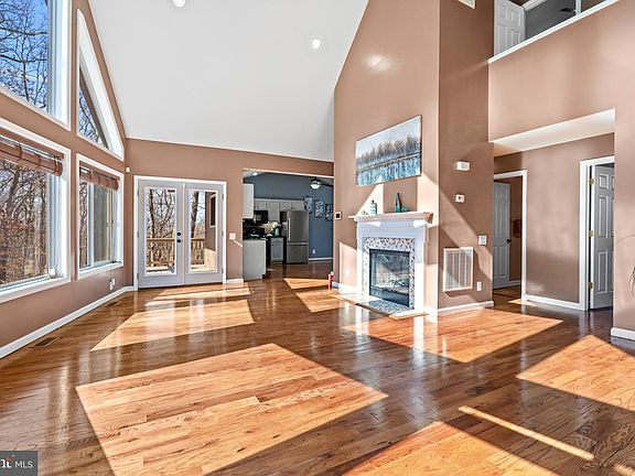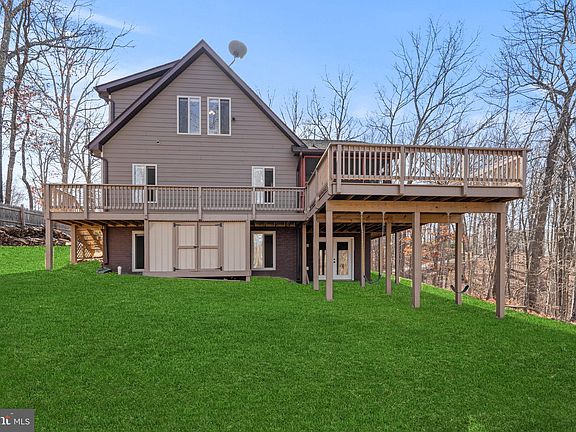 This picturesque 3-bedroom, 3-bathroom chalet harmonizes rustic charm with contemporary comforts for an idyllic living experience. Step inside to find inviting hardwood floors that grace the spacious living area, where a cozy fireplace beckons for intimate gatherings or tranquil evenings. The eat-in kitchen is well-equipped with modern appliances, abundant cabinet space, and a tiled backsplash. On the upper level you will find the primary suite, featuring its own private bathroom and serene vistas, the two additional bedrooms on the main level offer ample accommodations for family or guests. The fully finished basement offers another full bath and endless possibilities. An expansive wrap-around deck is a favorite feature, ideal for soaking in nature's beauty or hosting outdoor festivities. A screened porch provides a serene space to relax and unwind amidst the lush surroundings. Outside, the meticulously landscaped grounds, create a serene haven to escape the daily grind. Explore the spacious 2.4 acre lot where a mountain stream flows through the property. Located in the neighborhood of Shenandoah Farms, you have access to the Shenandoah River via private community boat landing, community playground, and picnic sites, two lakes as well as a country store. Nearby activities include, horseback riding, Skyline Drive, Skyline Caverns, wineries, breweries, and farmers markets, just to name a few! Whether you seek a weekend getaway or a permanent residence, this chalet in Shenandoah Farms promises an enchanting blend of tranquility, comfort,