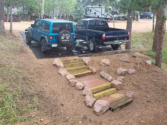 Private entranceLarge master suiteWalk-in pantryPrivate outdoor flagstone patioStorage closetOff-street blacktop parking padQueen log beds