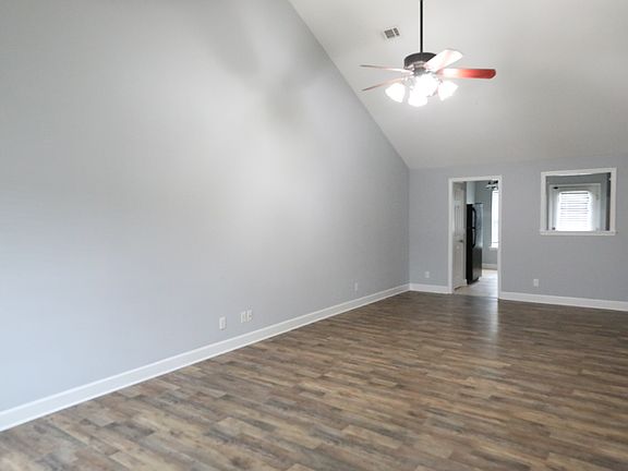 Fully renovated unit. Stainless steal stove, microwave, and dishwasher. Black Fridge. ONE STORY no stairs, Community pool, 1 mile walking trail around the neighborhood, close to golf course, covered area with picnic tables, bbq station, playground for kids, vaulted ceilings in master bedroom, high 15 ft ceilings in living room. Attic space/storage in each townhome. Owner pays HOA (covers Landscaping, pool upkeep, rood repair, dog trash station)