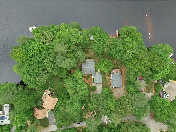 Make all your waterfront dreams come true! Whether you're seeking a peaceful weekend getaway or a year-round sanctuary, this home offers the ultimate blend of comfort, convenience and natural beauty. Located off a pretty country road, this 4 bedroom ranch includes a private guest suite in the finished lower level with a bath, LR, kitchenette and office. Plus it has its own entrance - an ideal space for hosting guests! On the main level are 3 additional BRs with ceiling fans and good size closets and/or built ins. The primary has unobstructed views of the water. An open concept modern kitchen provides perfect function but chances are you will want to spend most of our time in the family room that has views of the surrounding landscape. Outside a beautifully manicured yard includes all the amenities you’d want at the lake: a HUGE deck, two private docks and a fenced yard. Creature comforts: 2 cozy fireplaces, an oversized 2 car garage and a whole house generator. Vinyl siding and replacement windows. Newer tankless H20. CENTRAL AIR!! Move in with ample time to enjoy the summer sun!