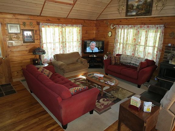 Log home in the forest. This home features a large porch for enjoying the changes of the seasons. The great room is fantastic for entertaining with its living room, dining room, and kitchen. There is lots of room with the 3 bedrooms and 2 baths. An oversized 2 car garage for your cars and toys. If you yearn for the outdoors there is a hunting shanty and lots of land for hunting. There are farm roads for ATVs or long walks observing nature. Located at the end of the road make sure you call before this one gets away.