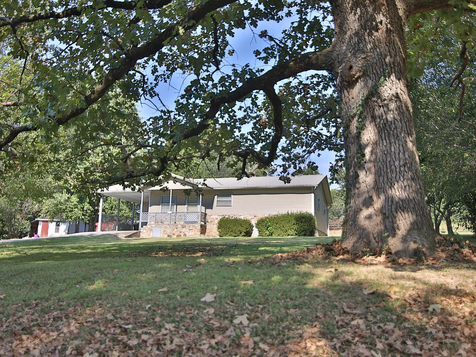 COUNTRY HOME 2+ ACRES just outside city limits on a paved road with 7-room 3-bedroom 1.5 bath on a very pretty setting with big yard and lots of shade. Home has central heat & air and 2 wall propane stoves for back up. Outstanding kitchen/dinning area that opens into the living room. Gas range, refrigerator, included. Acreage is mostly open for pasture and fenced and cross fenced good place for a few animals. There is a shop building plus a storage building. Various shade trees and a few walnut trees scattered over the acreage. Like to garden then there's a good spot. Half a mile to public access on Spring River for fishing or boating. A very tip top property offered @ $89,500.