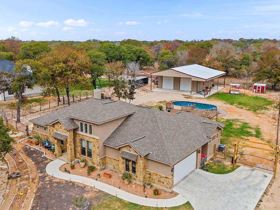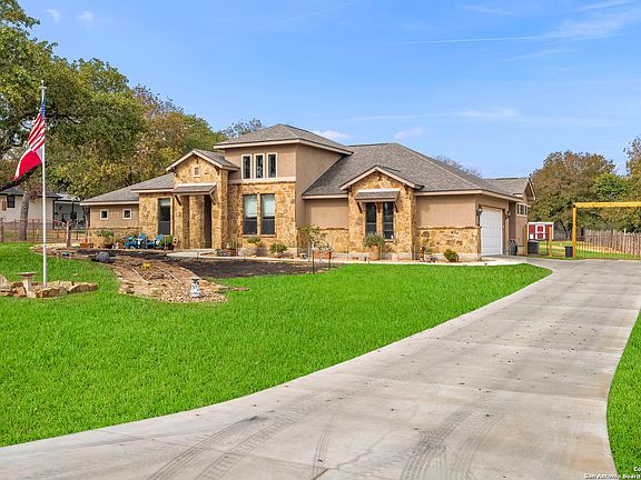 *Recently Replaced flooring in all bedrooms* Discover modern elegance and rural charm with this newly built (2022) 4-bedroom, 2.5-bathroom home in Floresville, TX. Set on a picturesque 1-acre lot, this stunning property offers the perfect blend of tranquility and convenience, located just 30 minutes from San Antonio and easily accessible via Highway 181. Designed with an open-concept layout, this home boasts a chef-inspired kitchen featuring stainless steel appliances, an oversized island, electric in-lay stovetop, and abundant cabinetry, making it ideal for entertaining or family gatherings. The inviting living room features a striking wooden beam ceiling and cozy fireplace, providing a warm and welcoming atmosphere. The luxurious primary suite is a serene retreat, offering dual vanities, a spacious walk-in closet, and an impressive dual-head shower, with direct access to the oversized utility room for added convenience. Three additional bedrooms provide flexibility for family, guests, or a home office. Step outside to enjoy the beautifully landscaped backyard, with a covered patio and a charming walkway leading to a custom firepit conversation area-perfect for outdoor entertaining under the Texas skies. A standout feature of this property is the 40x60 custom barn, designed to meet all your needs. Whether used as a workshop, hobby space, or additional storage, this barn is fully equipped with RV hookups, including power, water, and a dedicated septic system, making it a dream for RV enthusiasts or those seeking versatile functionality. This home combines the best of country living with modern amenities, offering a peaceful lifestyle without sacrificing convenience. Its proximity to San Antonio makes it ideal for commuters, while its spacious design and unique features cater to families, retirees, and buyers seeking a move-in-ready home with room to grow. Don't miss this opportunity to own a rare gem in the desirable Floresville area!
