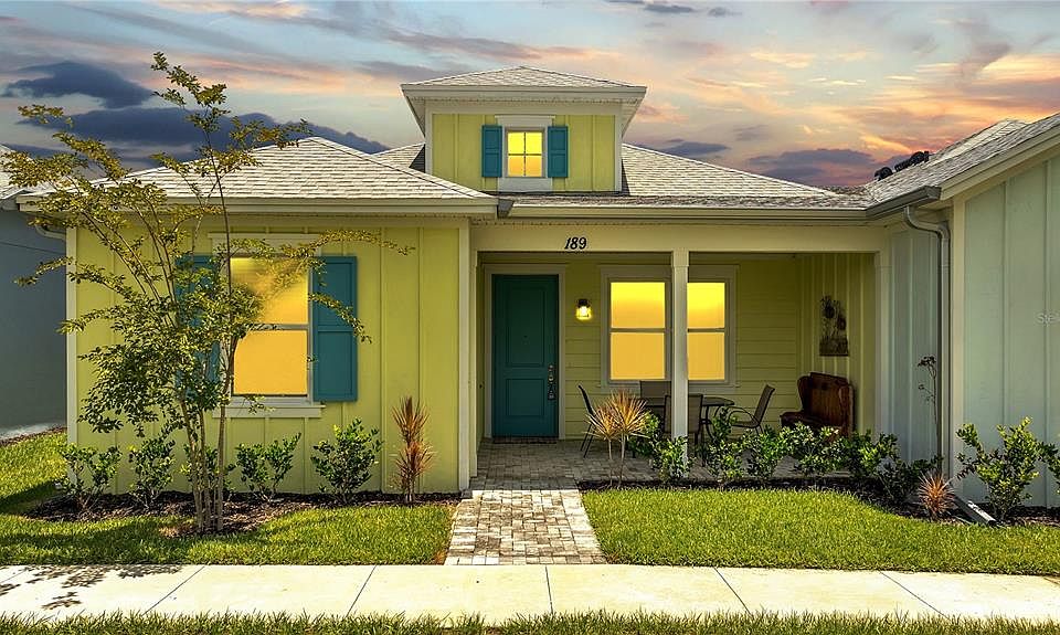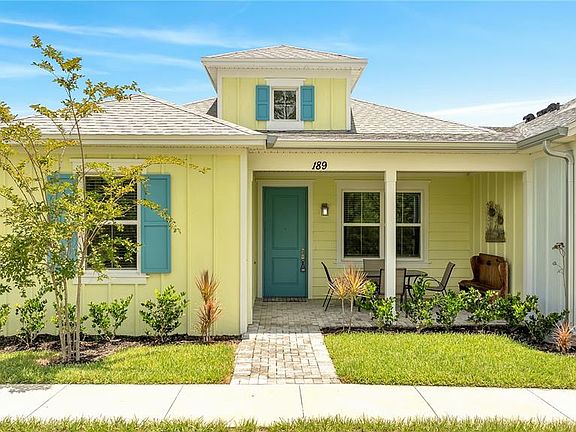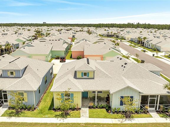 This CAMELIA COTTAGE in Margaritaville Latitude, 55 plus community with furniture. Active lifestyle. restaurant, gym, pickleball, bocce ball, tennis courts, walking trails, private beach club(Ormond Beach) with pool and entrance to the ocean where chairs and umbrellas will be provided, and shuttle service. Other amenities include a business center, woodworking shop, pottery room, game room, wine tasting room, and theater, all included for your enjoyment. This wonderful lifestyle open floor plan is amazing. It has 2 bedrooms, 2 full Baths, 2-car garages. The Living room and the Dining room have high ceilings giving this home a spacious open feel with a beautiful view. The Kitchen has cabinetry, granite, countertops, and a complete set of appliances still under warranty. The 2 bedrooms have a walk-in closet and the master bath has a large glass step-in shower.