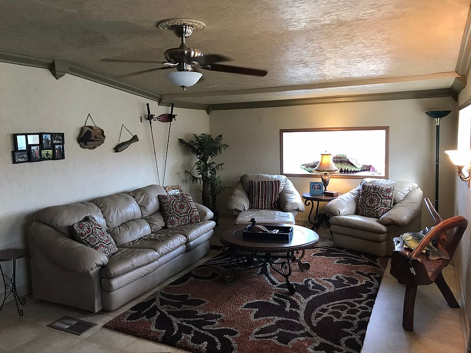 2 bedroom, 2 bath, living room, kitchen, breakfast area, office area, utility room, sunroom, lots of outdoor deck space, a redecked pier, newer septic and AC unit, and ALL FURNITURE INCLUDED IN THE PRICE!