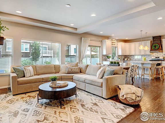 Welcome Home to this BEAUTIFULLY APPOINTED and meticulously well-maintained in popular ERIE HIGHLANDS! This modern floor plan offers EASY LIVING with an open design that is flooded with natural light, spacious rooms, and great entertaining spaces inside and out. The heart of the home is the beautiful CHEF'S kitchen with a large center island, stainless appliances (new dishwasher), granite counters, beautiful cabinetry, custom decorative hood, and separate pantry. The main level also offers an elegant entryway, a beautifully remodeled powder bath, a large family room w/modern fireplace and stunning hardwood floors throughout. Outside, the beautiful backyard is professionally landscaped w/ a large stamped concrete patio, hardwired landscape lighting and an array of gorgeous trees and shrubs (seller's mom is a landscape architect!) Upstairs there are 3 bedrooms, a spacious loft, convenient laundry room and a BEAUTIFUL PRIMARY SUITE with a gorgeous ensuite bath and LARGE WALK IN CLOSET! The secondary bedrooms are oversized and have INCREDIBLE MOUNTAIN VIEWS to enjoy! The full-sized basement is professionally finished and an entertainer's dream! There is a full-sized wet bar, tv area and beautiful guest room and bath. The basement would also make a great mother-in-law suite too (only need to add W/D hookups)! To finish, there are incredible mountain views from your covered front porch, an oversized 2 1/2 car garage, a brand new CLASS 4 roof, AMAZING NEIGHBORHOOD POOL AND FITNESS CENTER and is perfectly situated on a quiet cul-de-sac. The home is walking distance to many parks and trails, a short bike ride from quaint downtown Erie/Erie Rec Center/Library and offers an easy commutes to both NOCO and Denver/Boulder. You will love everything about this home! OPEN HOUSE SATURDAY, 10-2 and SUNDAY 11-3. Showings begin Friday, 8/25.