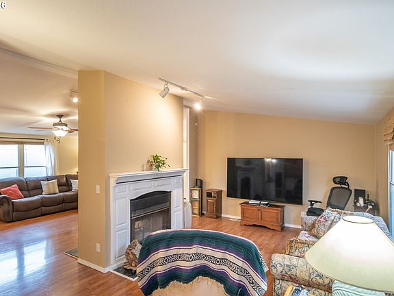 Well-maintained single-level home offering 3 bedrooms, 2 bathrooms, and 1,782 sq ft of comfortable living space. Features include a spacious 24x24 oversized detached garage with window and a brand-new roof. The privacy-fenced backyard includes a charming courtyard, covered patio with pavers, and an easy-care yard with a small garden area featuring raspberries, blueberries, and organic topsoil. Plenty of room to park multiple RVs, trailers, and toys, with parking available behind a drive-through gate plus an on-site RV sewer dump. Inside, enjoy a double-sided wood-burning fireplace serving both the living room and family room, along with a separate dining room and eat-in kitchen. Recent updates include newer flooring and fresh interior and exterior paint. All bedrooms feature brand-new carpet and walk-in closets. The primary suite offers a generous ensuite bath with soaking tub and walk-in shower. All kitchen appliances are included, along with washer and dryer. This property is perfect for those who need space, storage, and flexibility—bring all your toys!