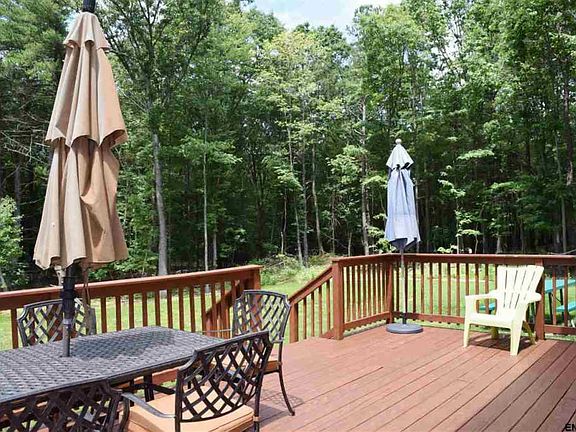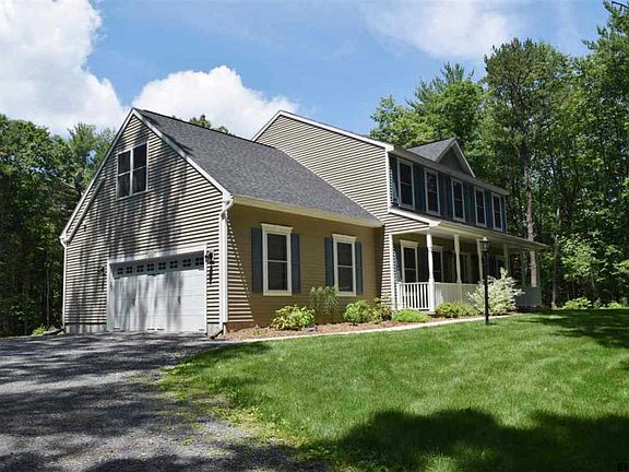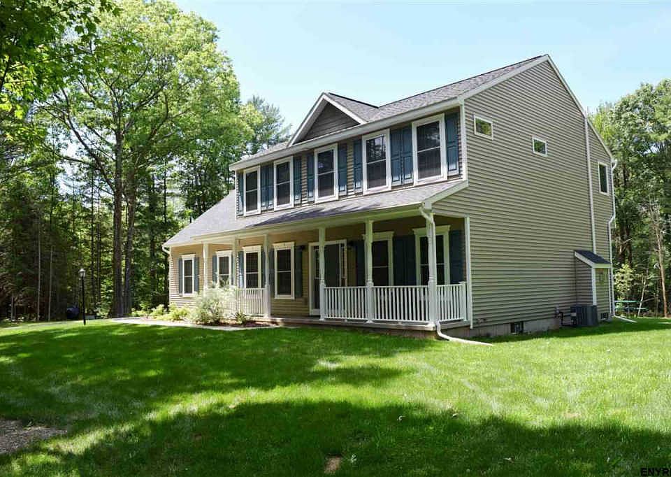 A rare find! This better-than-new 4 bedroom, 2.5 bathroom colonial with a 2 car over-sized attached garage is on a private 2 acre lot in East Greenbush Schools and is just 4 years young! You'll love the sprawling lawn spaces and the privacy of this lot with wooded borders including the treed buffer at the front property line along with the convenience of being less than 5 minutes to I-90 and a short commute to Albany, the RPI Tech Park, and Regeneron. Features a huge deck and an over-sized 2 car garage?no need for a shed with the extra space in the garage...and bring your rocking chairs or porch furniture for the front porch! Step inside to the spacious foyer w/ a coat closet and 3? oak hardwood floors that extend through the dining room and kitchen. The formal dining room also features a tray ceiling, crown molding, and a chandelier. The living room features custom shades, neutral carpeting and a wide doorway...perfect for adding French doors to create a private office space or playroom if you prefer. The kitchen offers a generous amount of cherry cabinets and granite counter space including a desk area. There's a tile back splash, double pantry closets, and a large dining area w/ cordless shades, sliding shades, and a sliding glass door to the deck and back yard. The stainless steel appliances are included: Whirlpool refrigerator and Frigidaire glass top range, microwave & dishwasher. Perfect for today's lifestyle, you?ll love the open floor plan of the kitchen and family room with a gas fireplace cordless shades, and new carpet w/ stain guard (Feb 2017). Also on the main floor is the partial bathroom w/ ceramic tile, a pedestal sink & a pocket door as well as the laundry room. Upstairs you'll find the spacious just-painted master bedroom with a vaulted ceiling, ceiling fan, neutral carpet, double door closet and separate walk-in closet, and a master bathroom features 2 separate vanities/sinks, a soaking tub, a linen closet, ceramic tile flooring, and a shower w/ a glass door. The three secondary bedrooms offer neutral carpeting, overhead lighting, and two of the secondary bedrooms feature walk-in closets. Extra insulation was added for the bedroom over the garage along with a split ductless heat/A/C unit to supplement the gas hot air heat and central air conditioning in that one room. The 2nd full bath features ceramic tile flooring, a double sink vanity, a fiberglass tub/shower and a linen closet in the bathroom as well as there being a hallway linen closet. Additional home features include vinyl double pane windows, vinyl exterior, architectural shingle roof, 200 AMP electric, propane gas hot air heat with an Amana furnace, central A/C, a GE water softener, propane gas 50 gal hot water heater, a drilled well, radon mitigation system in place, and septic. This home is located in the Town of Schodack with a Nassau mailing address and is in the highly-rated East Greenbush School District. Taxes reflect a current STAR savings of $521.