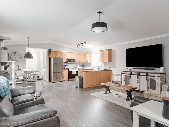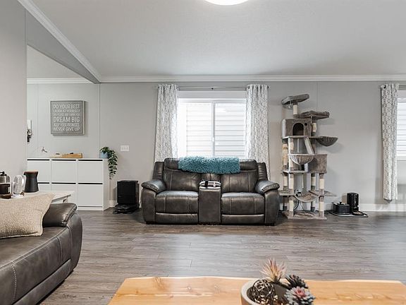 Welcome to 189 Grandview Crescent; modern updates, thoughtful design, and exceptional value in the heart of Gregoire Park. Built in 2010 and offering 1,520 sf. of well kept living space, this beautifully maintained manufactured home sits on a generously sized lot with PARKING FOR UP TO FOUR VEHICLES. The yard features a great-sized deck, and a 12X24 HEATED SHED WITH AN OVERHEAD DOOR AND MANUAL OPENER; perfect for storage, a workshop, or additional recreational space. There is plenty of room to enjoy the outdoors in this spacious and versatile yard. Inside, the home offers seamless flooring throughout and a layout designed for both comfort and function. AT THE FRONT OF THE HOME ARE THREE BEDROOMS. Ideal for family living, guests, or using one as a dedicated home office; along with a well appointed four piece bathroom. The heart of the home is the OVERSIZED LIVING AREA, FILLED WITH NATURAL LIGHT AND OPEN FLOW. The adjoining kitchen and dining space offer a modern feel with beautiful kitchen cabinetry, STAINLESS STEEL APPLIANCES NEW IN 2023, and a pantry, along with plenty of storage closets throughout the home, ensuring everything has a place. As you move toward the rear of the home, you’ll pass the laundry room, which provides extra storage and a BRAND-NEW WASHER AND DRYER (2025), as well as secondary access to the deck and backyard. Tucked at the back for added privacy, the spacious primary bedroom offers a relaxing retreat with a four piece ensuite and a walk-in closet complete with built-in shelving. Important updates have already been taken care of, including a HOT WATER TANK APPROXIMATELY 1.5 YEARS OLD, A FURNACE INSTALLED IN JUNE 2025, air conditioning roughly six to seven years old, heat trace, and a belly bag inspection completed in 2025. This home provides peace of mind and truly move-in-ready living. Gregoire Park is all about convenience and connection, offering quick access to restaurants, pubs, gas stations, grocery stores, hotels, and everyday amenities, all within easy reach. The neighbourhood is also filled with parks, green spaces, and walking trails, making it perfect for active families and outdoor lovers. Don’t miss out and book your private tour today and see the pride of ownership throughout 189 Grandview Crescent.