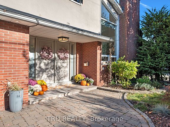 Welcome to 189 St. Laurent - a stylish and spacious side-split retreat, privately hidden behind a lush hedge in highly sought-after Manor Park! The thoughtfully redesigned landscaping offers exceptional curb appeal, complemented by a welcoming double-width driveway. Step inside to a bright and airy foyer with custom built-in storage and a convenient powder room. The generous eat-in kitchen provides abundant cabinetry, ample workspace, and direct flow into the inviting rear sunroom - the perfect spot for your morning coffee, surrounded by floor-to-ceiling sliding doors and natural light. The open-concept living and dining areas are anchored by a stunning vaulted ceiling, showcasing timeless mid-century modern character and ideal for entertaining. Upstairs, two well-sized bedrooms are thoughtfully placed at opposite ends of the home for added privacy, joined by a stylish main bathroom and a versatile office or nursery. The former garage has been converted into a comfortable main-level family room - perfect for a creative studio, guest suite, or cozy lounge. On the lower level, discover a laundry / utility room space, a flexible recreation room, and generous storage space to keep everything neatly organized. Set on a beautifully landscaped and fully fenced lot, this home combines timeless design with modern functionality - just moments from parks, shopping, and transit. Recent updates include: upgraded 200-amp panel (2022), Bosch high-efficiency heat pump furnace (2022), exterior shed (2022), fenced yard, and roof (2016).
