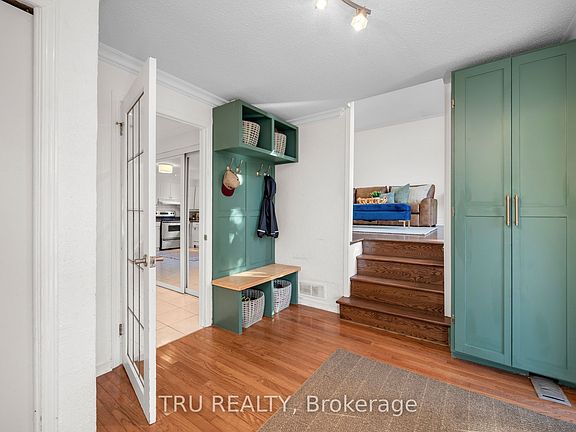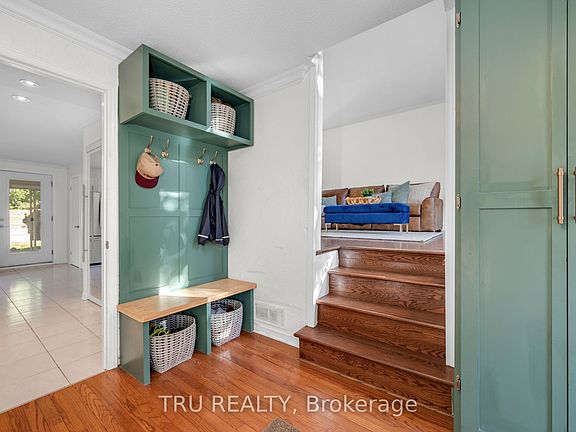 Lush hedgeDouble-width drivewayBright and airy foyerCustom built-in storageGenerous eat-in kitchenAbundant cabinetryInviting rear sunroom
