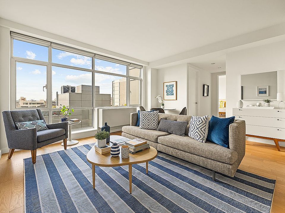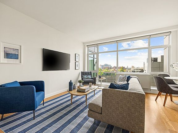 Perched above the many conveniences of Downtown Brooklyn and mere blocks from Cobble Hill and Brooklyn Heights, this extra-large one-bedroom condo is filled with natural light all day through a wall of oversized south-facing windows offering views for miles.