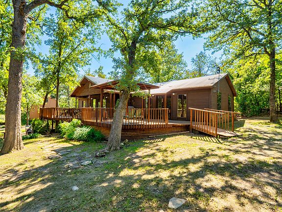 Welcome to 189 Stoney Ridge—a one-of-a-kind rustic farmhouse retreat nestled on 2.27, wooded acres in unincorporated Parker County. Tucked at the back of the property for ultimate privacy, this charming 2-bed, 2-bath home is the perfect sanctuary for those craving peace, nature, and room to breathe—just 25 minutes from downtown Fort Worth and 20 minutes to Weatherford. Step out onto the expansive wraparound deck and take in panoramic views of towering trees and open skies. Whether you're enjoying a morning coffee on the porch swing or entertaining under the covered outdoor kitchen, the setting is pure Texas charm. A breathtaking in-ground swimming pool with stone surround and waterfall offers the ideal space to relax, unwind, or host unforgettable gatherings. Inside, the home exudes warmth and character with wood accents, a cozy wood-burning stove, and thoughtful rustic details throughout. The oversized primary bedroom is a luxurious retreat with numerous large windows that invite the panoramic views of nature indoors. Outbuildings include a detached two-story workshop, an additional smaller workshop, and a carport with enclosed storage area that are perfect for tools, toys, or future conversion ideas. With two gated entrances off a private road, split rail fencing, and frontage on Aledo Farmer Road, this property also offers rare long-term commercial potential. No zoning. No deed restrictions. Azle ISD. With open space, shade trees, and natural terrain, it could easily be converted into a wonderful horse property. Bring your animals, your hobbies, and your dreams—this Texas treasure is ready to welcome you home!