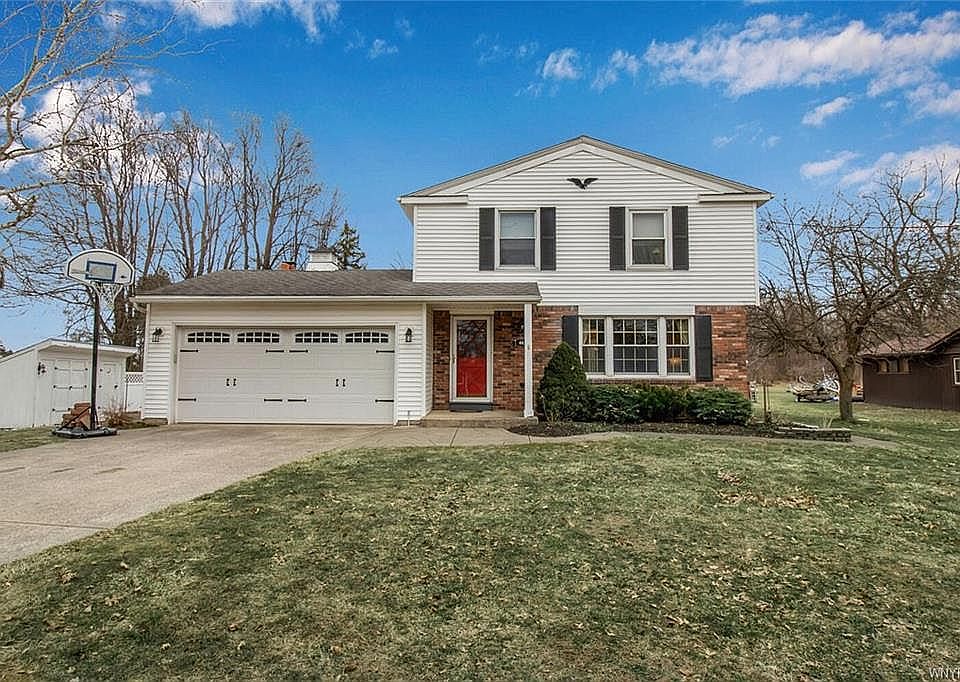 Highly sought after spacious meticulously cared for 4 bedroom & 1 full/2 half bath colonial on almost acre of land w/inground pool in the Town of Lancaster! Large bright eat-in updated ('18) kitchen w/new backsplash, counters and flooring includes appliances is perfect for entertaining! Beautiful hardwood floors throughout in the roomy living & formal dining room (or could be used as office/additional living space). Spacious family room with woodburning fireplace has sliding doors to the gorgeous 3 season sun room overlooking the relaxing patio and private park like backyard with fenced inground pool and no rear neighbors! Upstairs offers 4 large bedrooms all with gorgeous hardwood flooring and updated full bath. Master bedroom has its own 1/2bath ensuite. Lots of closet space throughout! Basement offers a separate room for office/workshop and a partially finished additional living area with cabinet area near the laundry room which includes washer and dryer. Freshly painted throughout with newer roof and some newer windows! 2021-05-20