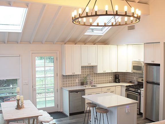 Freshly renovated and outfitted modern beach bungalow features vaulted ceilings, skylights, fireplace, outdoor shower, and walkout basement around the corner from "Members Only" Clearwater Beach and Marina access. One story living with hree bedrooms two baths, a cozy wrap around porch to lounge or dine in the shade and absolutely turn-key.