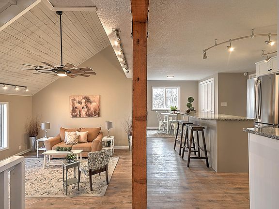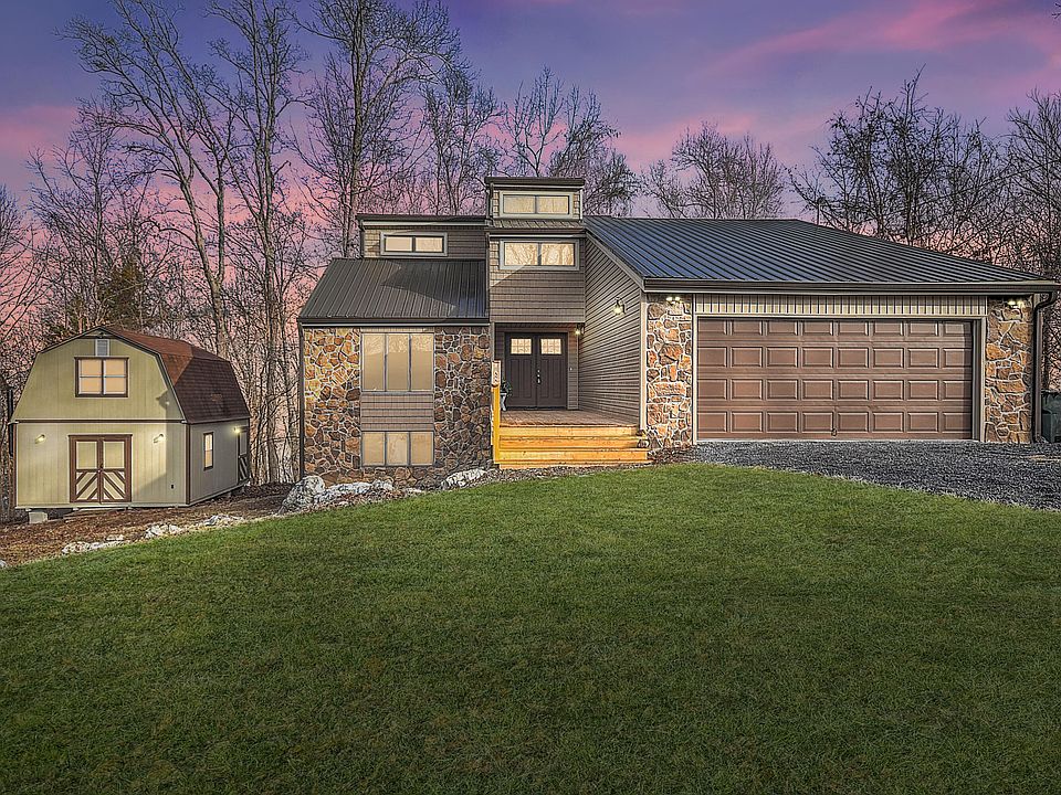 Live your best lake life! This stunningly remodeled home on a peaceful cul de sac with views of Boone Lake features modern updates throughout. One-of-a-kind details like the vaulted shiplap ceiling, rustic woodstove, and wood beams in the living room give this home unique appeal and contemporary style. The chic, eat-in kitchen features new stainless-steel appliances, bright subway tile backsplash, modern lighting, new fixtures, granite countertops, and an island/breakfast bar. New hardwood-look flooring has been installed throughout the home, including all four bedrooms. The bathrooms are fully updated as well, with new vanities, stylish fixtures, and much more! In the basement, you'll find a finished space that can be a family room, den, or rec room, with plenty of room left over for storage. The captivating design extends to the exterior, with a new front porch/entryway, stone façade, and updated color palette offering outstanding curb appeal. An oversized back deck provides lovely views of the nearby lake and mountains. A partially finished yard barn has been updated to provide extra living space to use any way you wish. The home is conveniently located just minutes from both Rockingham and Lakeview marinas. Come home and enjoy your new lake community!