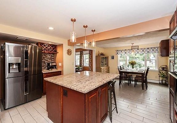 This 4 bedroom, 3 bath home is a definite must see! Many recent improvements include... beautiful new kitchen with granite counter tops, wet bar, center island and pantry closet, new vinyl siding and new windows*(2018). New roof (2017). An addition was added in 2017 which includes a double living room with pocket doors, 12,000 BTU ethanol fireplace, French doors leading to a deck, large MBR suite with walk-in closet and French doors leading to another deck, master bathroom includes double vanity and 4' x 5' walk-in shower with 3 shower heads, first floor laundry hookups were added and a new 200 amp electrical service. In 2015, Leaf Guard gutters were added to the main house and in 2017 to the addition. Weil-McLain furnace with 4 zones (2013). First floor laundry option. The second floor bonus room with kitchenette offers opportunity for teen suite or extended stay family members. Don't miss this one!