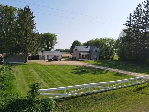 Classic countryside setting complete with the white fence & a beautiful remodeled 4 bedroom farmhouse on 1.68 acres with no close neighbors. All the big ticket items have been updated in the last 5 years including septic, well, steel roof, furnace, air conditioner, extra insulation, & more! Another recent update is the beautiful eat-in kitchen with SS appliances, cherry stained cabinets, and a center island so big that it would make even Martha Stewart jealous! The main floor bath features beautiful shower tile work and dated vanity with granite top. Beautiful wood and vinyl plank floors, knotty pine ceilings in the upper bedrooms, 13x36 backyard deck, oversized 2+ car heated garage, lean two & outdoor hydrant for your chickens, garden, & other hobby farm needs.