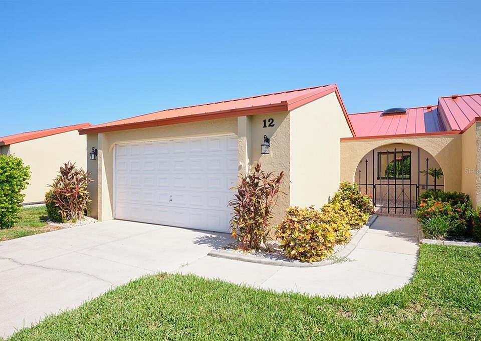 Beautiful, updated Waterfront Villa That has it all 3 bed /2 bath with a two-car garage. NEW METAL ROOF AND SKYLIGHTS JUST COMPLETED, All PGT Impact Windows and Doors, Villa has been completely remodeled inside with 24in tile floors throughout, gourmet kitchen, updated baths, The spacious, open floor plan boasts over 2,400 sq ft of living space that includes a great room w/soaring ceilings and skylights plus an air-conditioned Florida room. The gourmet kitchen offers a large center island, granite counters, Stainless Steel Appliances, custom wood cabinetry and tile back splash. The Large master bedroom has two custom walk in closets, beautifully design master bath with large walk-in shower. The complex offers 2 pools and clubhouse. one of the pools are right out your front door. There is also a fishing pier, Villa is across the street from Saint Andrews South Golf Club.