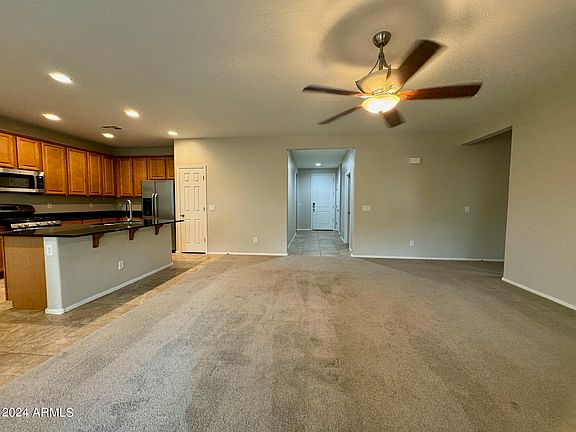 This highly sought after single level home with an open-concept floor plan seamlessly connects the living, dining, & kitchen areas creating a warm & inviting atmosphere. The kitchen features a large island, granite countertops, 5-burner gas stove, and breakfast bar, perfect for entertaining. The primary bedroom has ample space for all your furniture along with an en suite bathroom, dual vanities, separate tub and shower, and a generous walk-in closet. The floor plan is split, with the other three bedrooms and bathroom on the east side of home. Having the convenience of inside laundry and extra storage space in the garage is a plus! Brand new Trane HVAC system installed in 2023 to keep the entire home cool on those hot summer days. The home is situated on a N/S lot with a large backyard. Enjoy community amenities including walking paths and a beautiful, lighted community park/playground at the W end of the street.