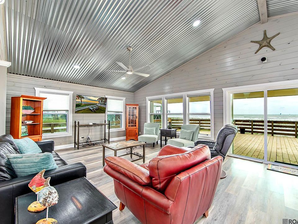A stunning four-bedroom, four-bathroom beach house overlooking the Gulf of Mexico, perfect for serene weekends in Grand Isle! This updated gem is move-in ready and offers a seamless blend of comfort and style. The roof was replaced in 2021, and the spacious, open floor plan features a living room, kitchen, and dining area beneath a striking cathedral ceiling in the den. Built with sturdy materials both inside and out, this home is designed to stand the test of time. Enjoy breathtaking views from the expansive beachfront deck, or relax on the wraparound deck that offers both sunny and shaded areas. There's ample parking space for boats and cars, along with the convenience of a lift. The kitchen is a chef's dream with granite tile countertops, a central island with slab granite and a wine refrigerator and bar setup, a pantry, and modern appliances, including an LG smooth-top range and microwave. Additional features include storm shutters on all windows for added protection, updated double paned windows throughout, a cargo lift, and an inside laundry room with full-sized Samsung washer and dryer. Enjoy the long carport bays providing ample parking and easy boat parking and turn-around. This beach house truly has everything you need for comfort, convenience, and coastal living. Owner/Agent