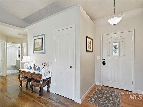 Discover this charming single-level home tucked away in a hidden West Boise location! Enjoy the perfect balance of privacy and convenience—just minutes from The Village, grocery stores, and everyday amenities, all within a mature subdivision that offers a peaceful, country-like feel. This home features 4 bedrooms, 2 beautifully remodeled bathrooms, and a spacious primary suite with a spa-like atmosphere, complete with a tiled walk-in shower. Real hardwood floors flow throughout the home, enhancing the warm and inviting open floorplan with vaulted ceilings. Step outside to an east-facing backyard ideal for summer evenings, featuring a large stamped and stained patio perfect for entertaining. The extra-wide garage provides ample room for storage, and an 8' x 10' Stor-Mor shed adds even more space for tools, toys, or hobbies. A rare find in a desirable area—this home blends comfort, style, and location!