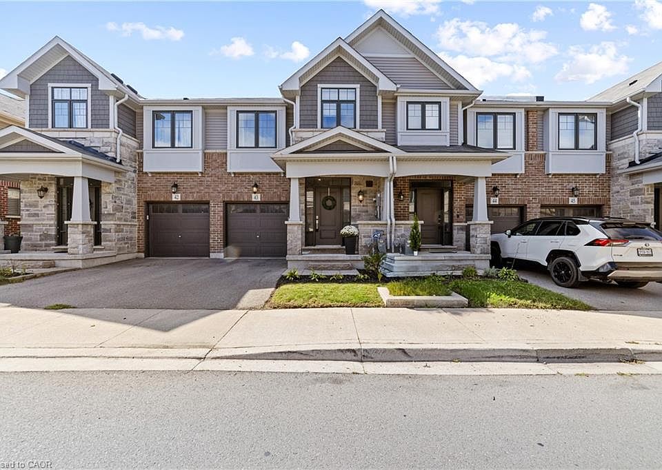 This beautifully crafted two-storey townhome by Branthaven Homes boasts a striking brick and stone exterior that exudes curb appeal. Step inside to discover refined finishes and thoughtfully designed living spaces, featuring soaring 9-foot ceilings and stylish laminate and ceramic flooring throughout. The modern kitchen is equipped with granite countertops and stainless-steel appliances, perfect for both everyday living and entertaining. Upstairs, youll find three generously sized bedrooms, including a primary suite with a walk-in closet and a private ensuite. A spacious laundry room and an additional full bathroom add to the home's convenience. Ideally located on Stoney Creek Mountain, this home sits across from the scenic 192-acre Eramosa Karst Conservation Area and is just minutes from the Red Hill Valley Parkway. It's also steps away from Bishop Ryan Catholic Secondary School. This exceptional home won't last long.