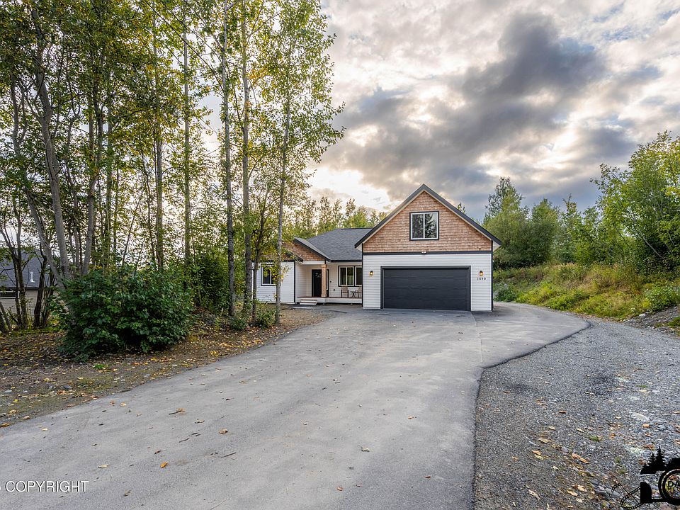 Nearly new home just minutes from downtown Wasilla & Lake Lucille Park! 3 bedrooms on main floor + spacious bonus room w/half bath above garage. Stunning quartz counters, luxury LVP, tiled walk-in shower & freestanding tub. Currently used as a business, tubs/showers never used! Backyard ready for parking or landscaping. Enjoy modern design & like-new condition without the wait!