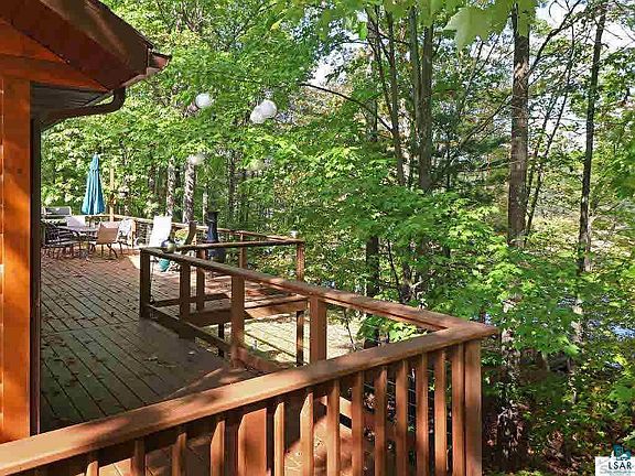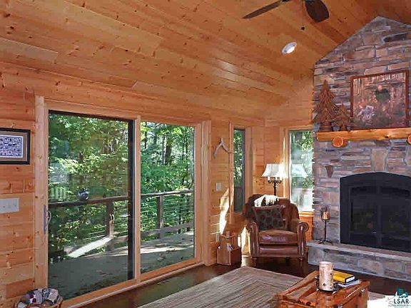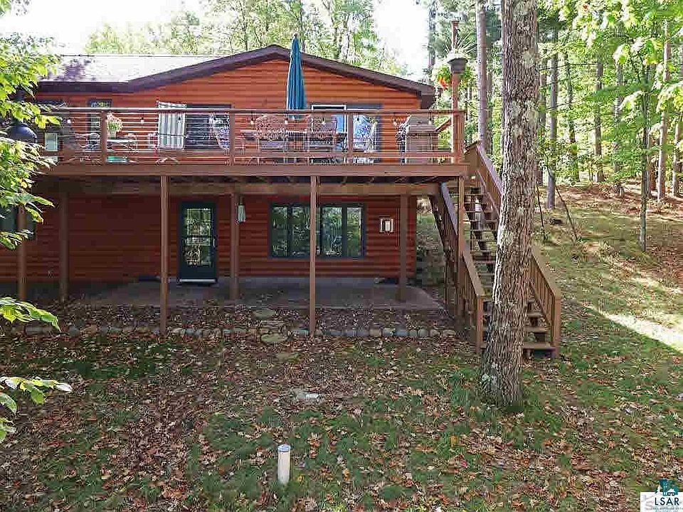 Enjoy peaceful beauty, fishing, kayaking, canoeing, boating with easy access to the main Middle Eau Claire Lake just around the corner for full recreational use and excellent swimming. Beautiful fully remodeled half-log sided, year-round home with stone fireplace, wrap around deck, large updated kitchen, and lovely woods and water views. Addition in 2010 expanded living space, plus new windows and roof. Drive-thru 40x30 pole building provides lots of storage and room for all the toys. Less than 3 hours from the Twin Cities; on hour to Superior/Duluth.