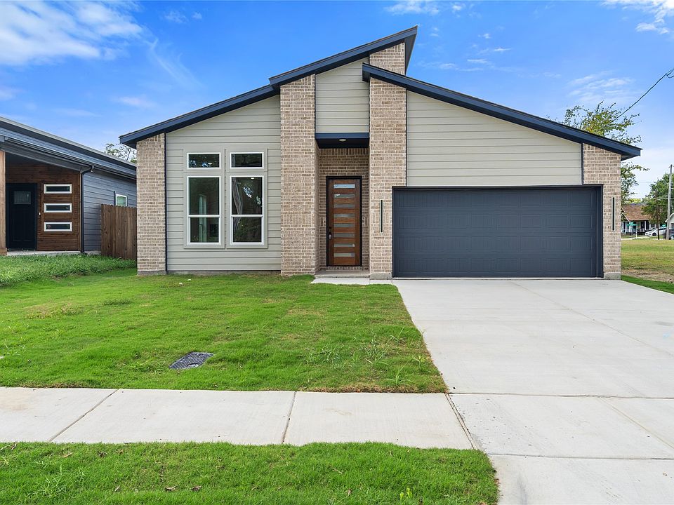 This stunning NEW BUILD 3 bedroom 2 bath 2 car garage contemporary home blends sleek architectural lines with timeless finishes. The bold roof angles, mixed brick and siding exterior, and dramatic black garage door create a modern yet inviting presence. Inside you’ll find soaring 11-foot ceilings, luxury vinyl plank flooring, and an open-concept layout that flows into a sleek, designer kitchen. The kitchen features decorative lighting, quartz countertops, stainless steel appliances, a stainless steel trough sink, and a spacious walk-in pantry. The 3 bedrooms are thoughtfully designed with a split layout, 9-foot ceilings, plush carpeting, and ceiling fans in every room. The bathrooms showcase a modern, elegant touch with marbleized black-and-white tile, quartz counters, and bold black fixtures. A well-sized laundry room with black flooring adds convenience and is located off the garage. The backyard is generous in size, fully fenced with a wood privacy fence, and includes a covered back porch perfect for relaxing or entertaining. Located on a quiet, private street just minutes from downtown Greenville, shopping, and dining—you’ll enjoy the best of country living with modern conveniences close at hand.