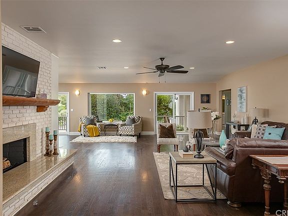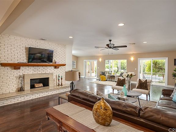 A wonderful updated home in Porter Ranch offers a pool, RV Parking and a cul-de-sac location. Enter to stunning hardwood wood floors and a fireplace in the living room. The wide-open floor plan is filled with natural light from every direction. There are 2 breakfast bars and a formal dining area with fireplace. Stylish granite counters and back splash accent the beautifully remodeled kitchen. The authentic hardwood floors expand throughout the entire house, leaving no carpet at all to clean. There are also plantation shutters in every room. Step down into the romantic master suite with high ceiling and wonderful natural light. The exquisite master bathroom offers an all glass shower and separate tub. Three guest bedrooms are very spacious and two of them have attached remodeled bathrooms. The rear covered patio is elevated above the pool area, making it the perfect place to keep an eye on backyard activities. The RV parking near the garage is very convenient for a growing family with future cars to park, or it is great for a basketball hoop. All of this wraps into an outstanding value in the middle of an outstanding school district, which is hard to find.