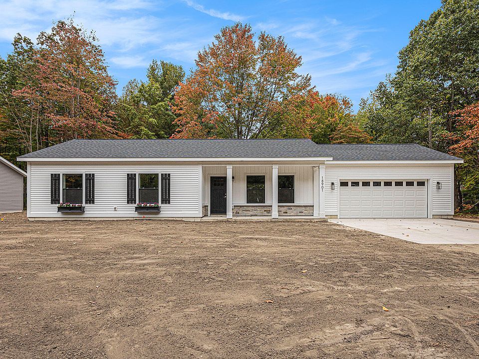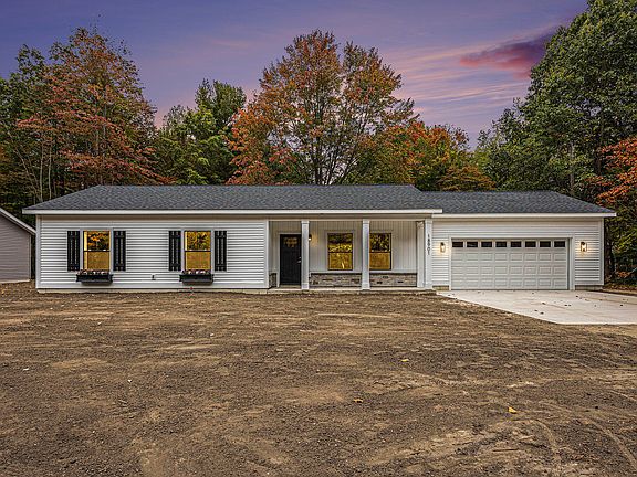 Well-built 3-bedroom, 2 full bathroom, ranch home. Features 9ft sidewalls. Attached 24ft x 26ft garage with built in shelves. 1.5 wooded acres. City water and sewer. Spring Lake Schools. Ready to occupy new construction. Concrete patio off dining area. Tile shower in primary bathroom. No condo dues or restrictions. Additional 24ft x 30ft garage behind home. Built by JD Fisher Builders. First time listed in the MLS 10/10/25.