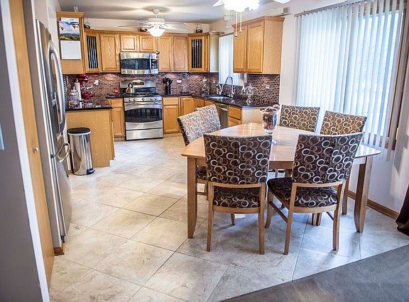 Beautiful updated contemporary 2-story home located on a corner lot. Blue Ribbon H/F School Dist. Features 4 bdrm (w/2 master bdrm suites), 3 full bths, eat-in kit w/SS appl, basement features media area/office & exercise rms. Prof. landscaped yard with 2014 concrete patio.