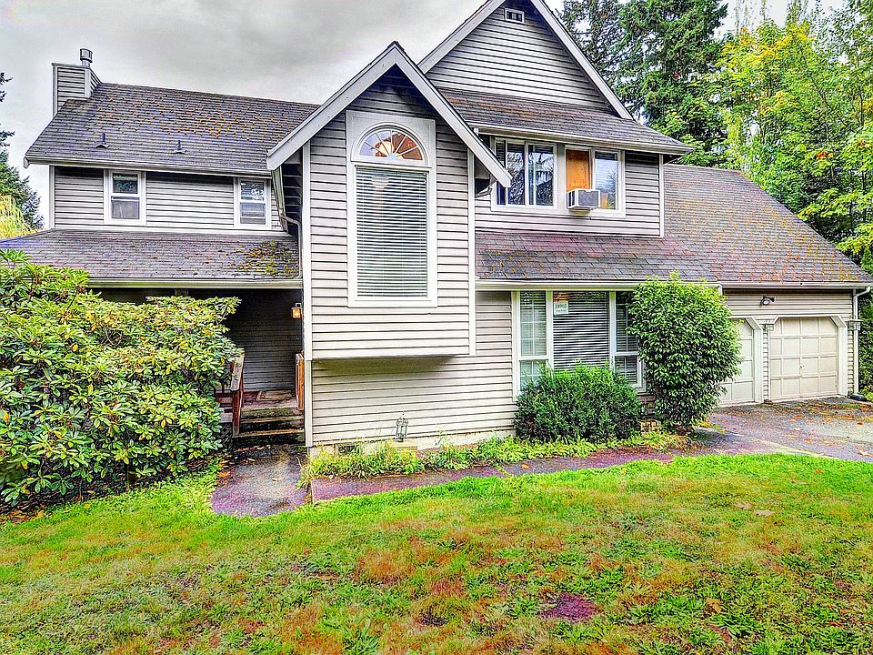 Enchanting Bothell Beauty. Private 1/3 acre lot with $4+ bedroom home walking distance to fun, downtown Bothell. Updated kitchen with white, raised panel cabinetry, recessed lighting, tile counters, gas cook-top, eating bar and hardwoods. Adjacent dining space with door out to entertainment-sized deck. Great territorial views and lots of natural light. Subtle designer colors and white white mill work throughout. home. Master suite is generous, w/private bath and plenty of storage. 2 car garage.