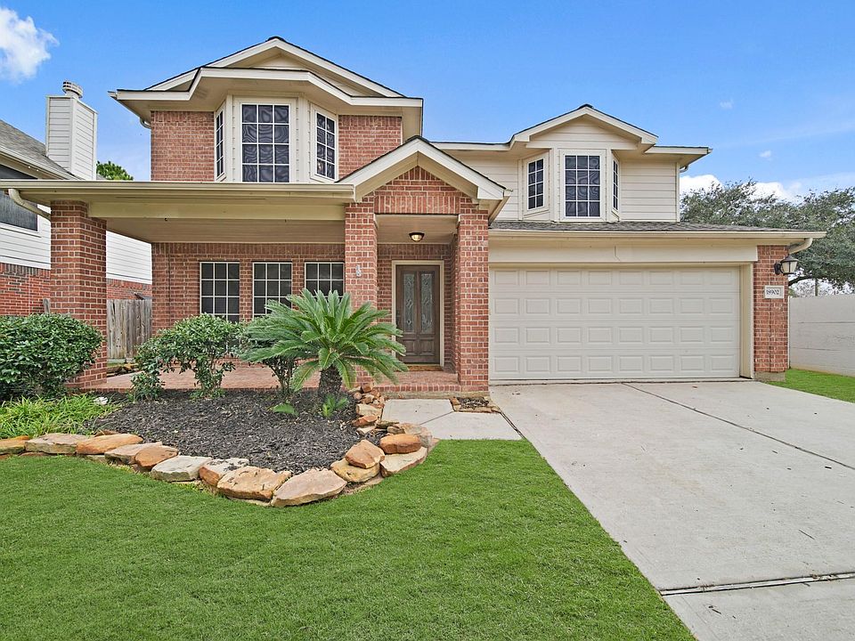 Welcome to this beautifully maintained 4/2.5 home on a quiet cul-de-sac in the gated community of Canyon Gate at Northpointe. Offering 2,328 sq ft, this home features both formals, a spacious family room with a cozy gas fireplace, and a kitchen that opens seamlessly to the living area—perfect for gatherings. The kitchen includes granite counters, under-cabinet lighting, and a walk-in pantry. All bedrooms are upstairs, including a generous primary suite with double sinks, soaking tub, separate shower, and large walk-in closet. Fresh paint in upstairs bedrooms and baths. Recent updates include A/C capacitor (2024), attic fans (2025), oven/stove (2024), and water heater (2022). The backyard offers a peaceful patio with lush landscaping. Enjoy community amenities—pool, fitness center, playgrounds, pickleball, sand volleyball, and tennis—plus quick access to 249, 99, and Beltway. This home blends comfort, convenience, and incredible value! Tomball ISD.