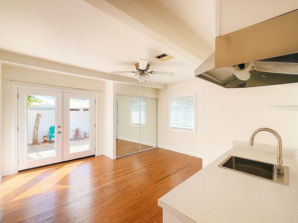 Fully enclosed patio areaUpdated fixturesOpen floor planPlenty of natural lightModern corner showerWarm wood floorsStorage vanity