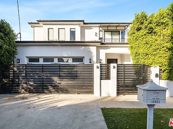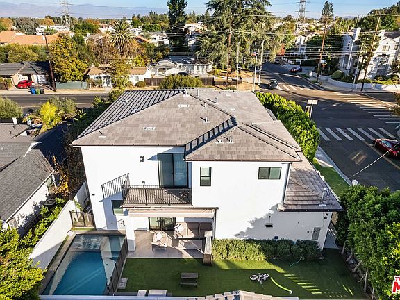 Welcome to your Tarzana dream home- a gated modern masterpiece designed for comfort and luxury. This sunlit home boasts 4 spacious bedrooms, including a grand master suite with a king-sized bed, balcony, and a huge walk-in closet. Two additional upstairs bedrooms feature twin beds and large walk-in closets, while the downstairs bedroom offers a cozy queen bed. With 4 full bathrooms and a powder room, convenience is at your fingertips. Enjoy your space in style with the open-concept living and dining area, complete with hardwood floors, recessed lighting, and a gas fireplace. The gourmet kitchen features high-end KitchenAid appliances, a dishwasher, and a dining table that seats 8. All rooms are equipped with Smart TVs and blackout blinds for ultimate relaxation. Step outside to your private oasis. The backyard offers a pool and hot tub with a safety fence, a covered patio with an outdoor heater, a BBQ pit, and artificial turf for low-maintenance elegance. Sports enthusiasts will love the full-court basketball setup. Additional features include a smart home heating system, a laundry room with a full-sized washer and dryer, a small office under the stairs, and a camera security system with intercom.This home is a perfect blend of modern design and functional living, ideal for families and entertainers alike. Don't miss this rare Tarzana gem!