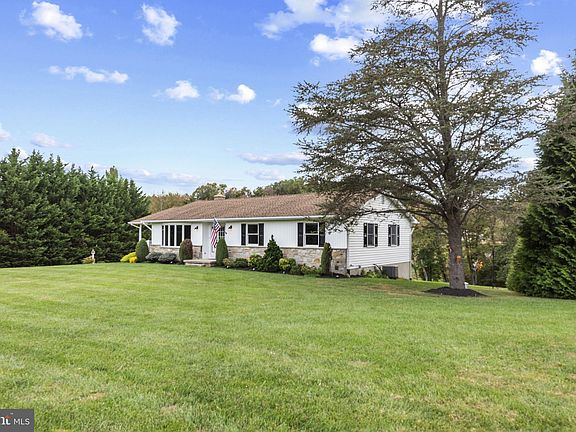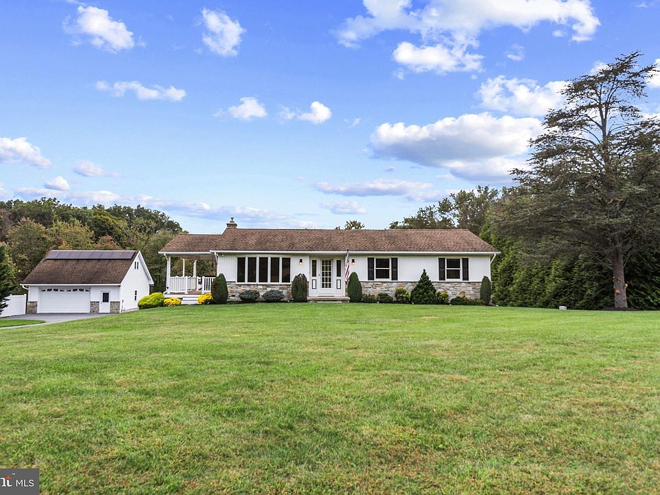 Beautifully updated stone embellished rancher offering the perfect blend of charm and modern convenience. This three-bedroom, one-and-a-half bath home features a fully renovated kitchen with custom cherry cabinetry, soft-close pull-out drawers, two lazy Susans, granite countertops, a large island, and stainless-steel appliances. The kitchen and dining area boast gleaming hardwood floors, leading to a bright sunroom with floor-to-ceiling windows showcasing immaculate views. Enjoy a spacious living room with a bay window and gas fireplace, and an updated full bath with stylish finishes. The fully finished basement provides additional living or entertaining space. Outside, relax on the rear patio with a hot tub, or the elevated side deck. Take advantage of additional space the attached and detached two-car garage provide Detached garage includes finished living space above — perfect for guests, a studio, a home office etc! Additional features include a beautifully paved driveway, a paid-in-full solar panel system (average electric bill of just about $9/month), an invisible dog fence, and a Honda generator hookup. This home truly combines comfort, efficiency, and thoughtful upgrades inside and out. Home is located in extremely desirable Hereford Zone school district. This home is one you just have to see in person to appreciate. Set up a showing today!!