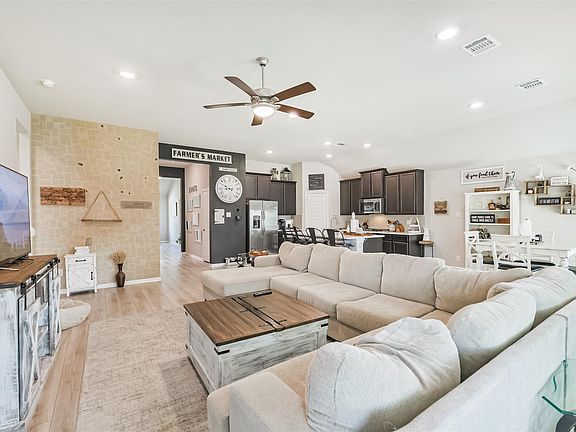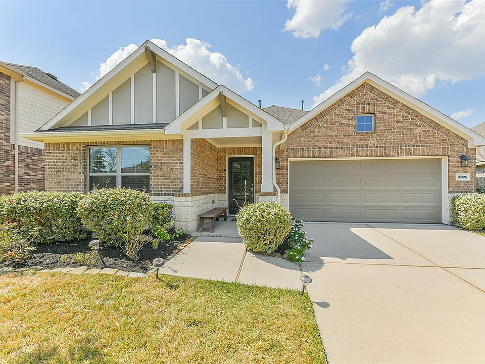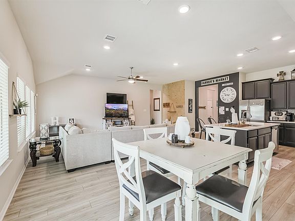 Beautiful open and spacious one-story in Tavola! This home sits on a quiet cul-de-sac just steps from Tavola Elementary and neighborhood amenities. Offering 3 bedrooms, 2 baths, and an inviting family room that flows seamlessly into the dining area and kitchen, the layout is perfect for both everyday living and entertaining. The kitchen features a large island, quartz countertops, subway tile backsplash, stainless steel appliances, and plenty of cabinet space. Hard surface flooring extends through the main areas for style and easy maintenance. The owner’s suite boasts a tiled walk-in shower, dual sinks, and generous closet space. Outside, enjoy a covered patio, gas line stub-out ready for a future BBQ pit, and a full sprinkler system to keep your lawn looking its best. Zoned to New Caney ISD, this home combines comfort, upgrades, and convenience in a prime location. Schedule your tour today!