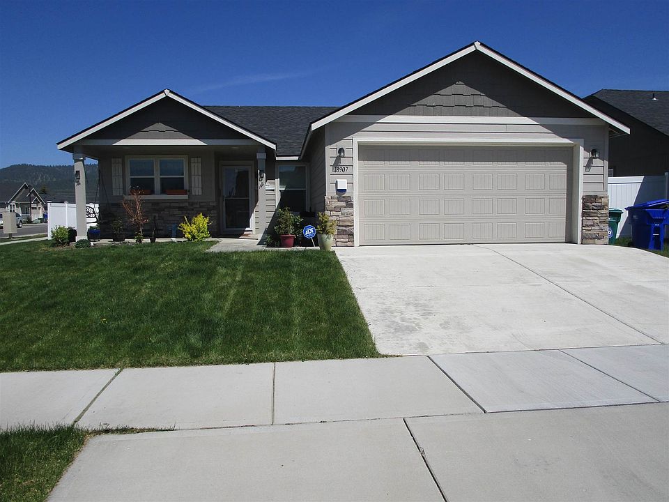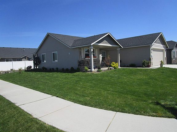 One level living in like new condition and limited supply! Some of the great features of this home are main floor utilities, gas fireplace, covered patio, A/C, partial sprinkler system, stone masonry accents. Built in 2016 with 3 bedrooms, 2 baths on corner lot. Washer and dryer stay.