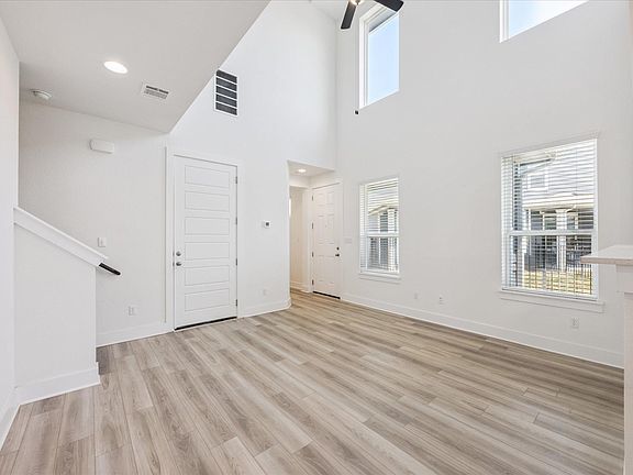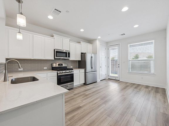 This beautiful, recently built home offers 1,901 sq. ft. of stylish living space with 4 bedrooms, 2.5 bathrooms, and an open floor plan perfect for everyday living and entertaining. The main level features elegant plank flooring, excellent natural light, and a spacious living area that flows effortlessly into the kitchen. The large, ground-floor primary suite provides a relaxing retreat with an ensuite bath, dual vanities, and a walk-in shower. The chef-inspired kitchen includes quartz countertops, pendant lighting, stainless steel appliances, and plenty of cabinet storage. Upstairs are three additional bedrooms and an ample flex space, perfect for a secondary family room, home theater, or playroom. Additional features include 8-foot doors on both levels, a covered outdoor area, and a convenient location in Round Rock, close to schools, shopping, dining, and major roads.