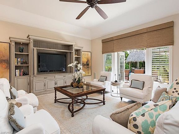 H.10708 An exceptional find in Royal Harbor. Minutes from downtown Approximately 100 feet of water frontage with boat dock/lift. An open floor plan, split bedrooms, providing ultimate comfort for guests. A roomy master suite overlooking the pool. A kitchen fit for a chef with lots of prep and serving space. Natural oak oiled wood and saturnia flooring. Custom cabinetry French doors to an outdoor oasis perfect for entertaining with an outdoor kitchen, a relaxing chickee hut gathering area and large free form swimming pool. A waterfall and lush landscaping surround the outdoor space with an enclosed outdoor shower to provide the ultimate experience of Florida lifestyle. This home is casual comfort that can easily transition to a new owner's individual tastes. Impact glass doors and windows. Beautifully appointed on a large wide corner with a front porch entry, circular drive and well manicured streetscape. This should definitely be on a buyer " must see" list.