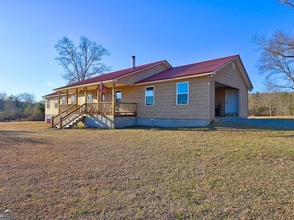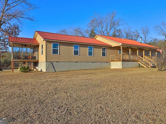 Welcome to this custom-built ranch home situated on 10 acres of level, usable land, thoughtfully designed for peaceful country living. Approximately 3 acres are cleared and partially fenced, ideal for animals, gardening, or pasture, while the remaining acreage provides wooded trails, and a natural creek just beyond the cleared area. The property is currently set up for farm life, featuring coops, fencing, and space to house dogs, chickens, guineas, and goats. Abundant wildlife, including deer, add to the appeal. Whether you're dreaming of a small farm, hunting, trail riding, gardening, or just wide-open space, this property is perfect. The 2,230 sq ft ranch home offers 3 bedrooms and 3 bathrooms. It was built with comfort and accessibility in mind, featuring wide hallways and doorways. The open-concept living and kitchen area creates a warm, inviting space perfect for everyday living and entertaining, complemented by hardwood floors throughout the main living areas. Just off the laundry/mudroom is a full bathroom with exterior access, ideal for farm use, outdoor projects, or guests. Outdoor living is abundant with a covered front porch, a large open back deck overlooking the property, and a screened-in side porch off the primary suite, wired and built to support a hot tub. An additional meter base with camper plug is already in place and can support future additions such as a pool. Convenient to Macon, Milledgeville,and Dublin. USDA eligible area