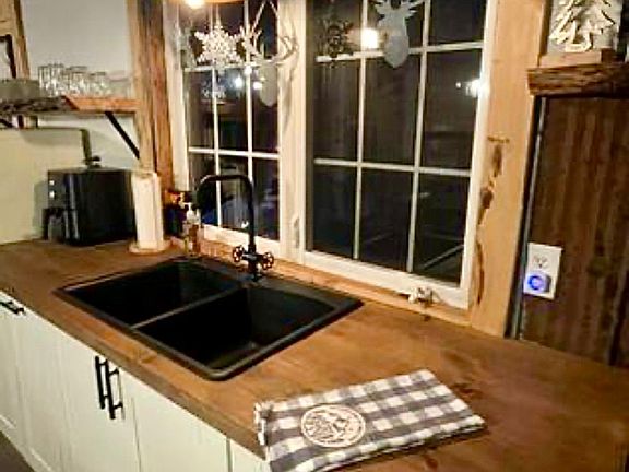 Stunning cabinModern comfortsRustic charmOpen-concept kitchenCozy bedroomsSleek and contemporary bathroomSerene wooded surroundings