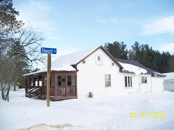 Newly listed Three Lakes neighborhood home set on 3 city lots , a quick stroll from the town park and pavilion. Home has an updated exterior w/ vinyl siding and metal roofing, all systems appear to be fully functional, The house is in need of paint and flooring , but overall appears to be in decent condition with no need for major repairs or damage noted. Entry porch along with a covered front deck, 2 car detached garage, 1st floor laundry and partial basement for utility access. The property is zoned B-2 and has a good location to support possible commercial use.