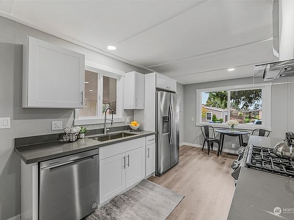 FINANCING AVAILABLE. Own you Land! Welcome to this beautifully remodeled one-level home, where modern comfort meets classic charm. This property offers a great open floor plan, perfect for easy living & entertaining. Why rent when you can own this thoughtfully updated home. The brand-new kitchen boasts stainless steel appliances, quartz countertops, and a spacious island making it a chef’s dream. Relax in the master suite with a renovated en-suite bathroom. Energy-efficient upgrades, including new windows, new hot water tank, new furnace, new roof, new flooring, paint, landscaping etc. Move in ready Located in the desirable Holly Hills neighborhood; close to schools, shopping, parks I405, 522 & downtown Woodinville