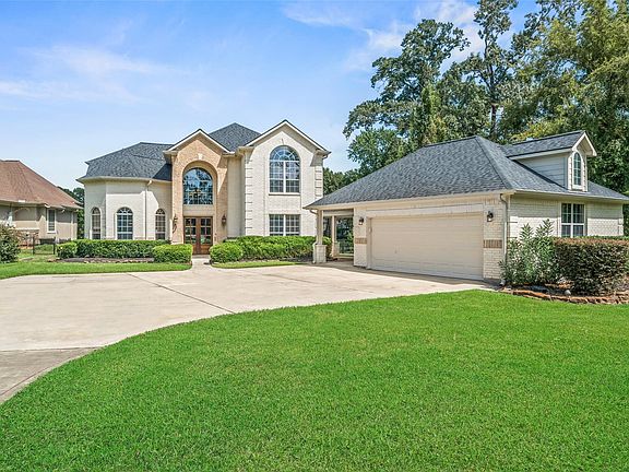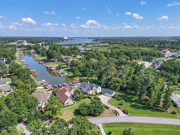 Beautifully designed waterfront home in pristine condition sits on a 1/2+acre lot in the exclusive gated community of Grand Harbor. Featuring 4 spacious bedroom, 3.5 baths & blends elegance w/charming lake living. Highlights include stunning craftsman style double wooden doors, impressive entry, formal dining w/coffered ceiling, Media/Study (flex room), wood look tile floors throughout, walls of windows w/plantation shutters. Recently remodeled kitchen boast a counter height breakfast bar, large center island w/quartz countertop, tile backsplash, stainless appliances, pot filler, opens to light/bright breakfast w/window seating, Lg living overlooking the covered patio, gorgeous pool and lake Conroe. The primary suite showcases a luxurious, remodeled bathroom with custom shower, corner soaking tub, oversized secondary bedrooms up, remodeled guest baths, Lg game room w/custom built ins & leads to huge covered back patio. Boat slip/motorized lift, sprinkler sys & so much more!
