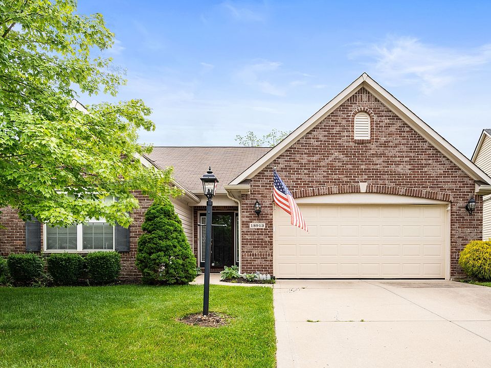 SELLER IS REPLACING THE ROOF. Great value on the 7th tee of golf course! Discover this captivating ranch-style home situated in the Greens at Prairie Crossing of Noblesville. Encompassing 2,086 square feet, this elegant residence features two spacious bedrooms plus a den and two updated bathrooms. The open layout creates a bright and airy ambiance, ideal for seamless entertaining. Step onto the covered patio, where you can unwind while enjoying picturesque golf course views. Recent enhancements include a new furnace, new AC, new refrigerator and a new tankless water heater, providing modern comforts. Experience the perfect blend of style and functionality! Less than 2 miles to downtown and 1.5 miles to the Federal Hill Commons with concerts and farmers market and more.